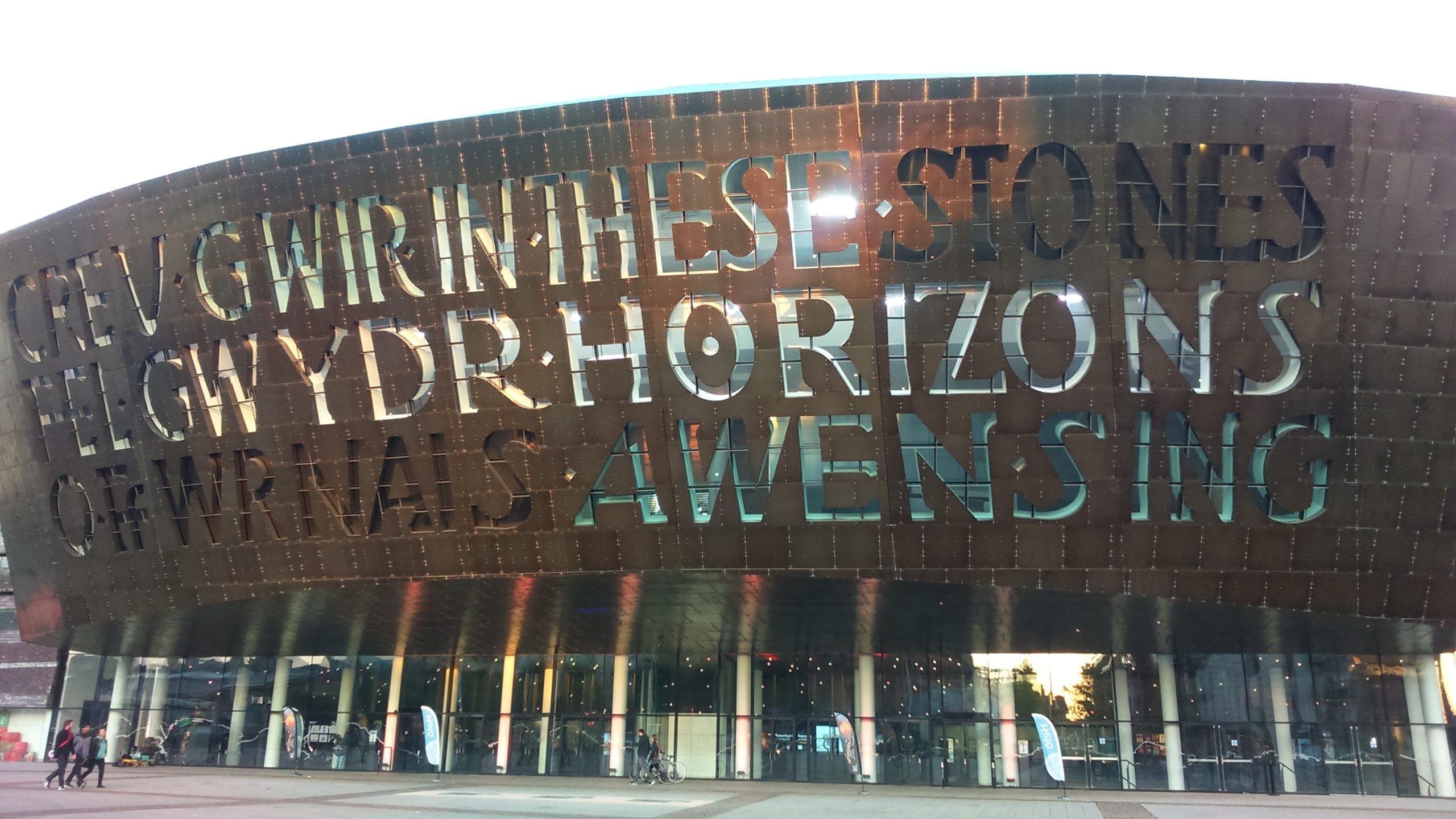 O acolhimento foi feito na própria Assembleia Nacional de Gales – ou Senado – num edifício fabuloso de arquitetura moderna e vanguardista em forma de árvore, sendo que por debaixo estão as “raízes”, isto é, as raízes deste país, o parlamento recém criado cuja construção tenta aproveitar ao máximo a luz natural e serem parte, auto sustentado, por exemplo reduzindo o aquecimento elétrico com o aproveitamento da água da chuva (abundante a maior parte do ano) que é conduzida a cerca de uma centena de metros terra adentro para aquecer e ser reaproveitada para aquecer o edifício.