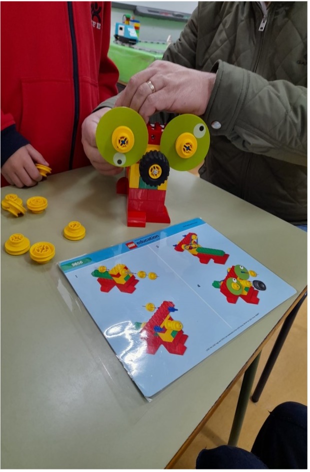 Terceiro dia em Madrid. Iniciámos os trabalhos participando ativamente nas aulas de robótica. Os alunos do segundo ano foram os mentores da atividade de construção de robôs com materiais recicláveis. Na sequência desta atividade, a partir de modelos da Lego, os alunos fizeram novas construções. Estas atividades visam desenvolver a planificação, o trabalho colaborativo e o pensamento computacional.