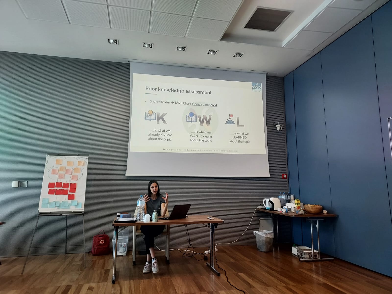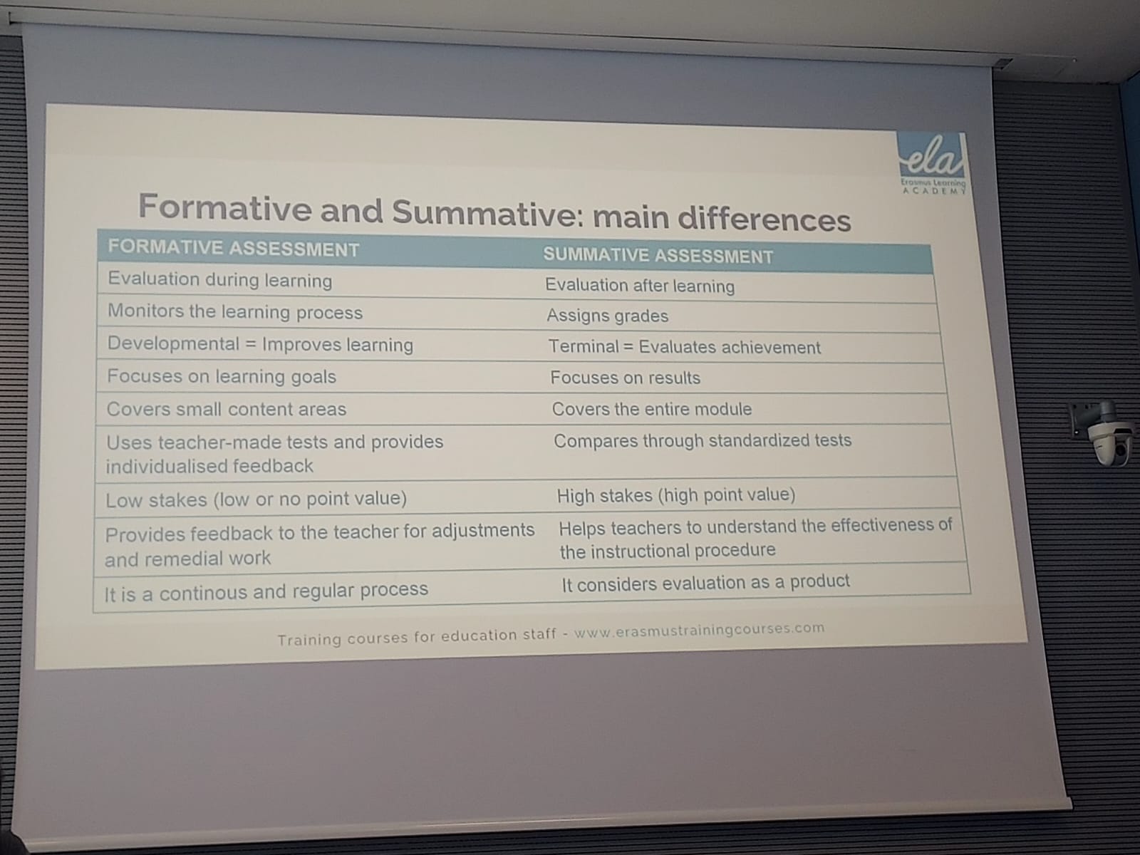 Às 9h00, todos estavam no ponto de encontro para iniciar os trabalhos, sob a orientação da responsável e formadora Sara Natalini. Depois de uns breves esclarecimentos sobre o curso, e para estimular a interacção entre os participantes, foram realizadas atividades de “ice breaking”. De seguida, uma dinâmica de grupo permitiu aos presentes aferir os seus receios, as expetativas quanto ao curso bem como os eventuais contributos de cada um. No decorrer dos trabalhos foram abordadas as estratégias KWL, KWH e KNWS, que estão relacionadas com a avaliação formativa e sumativa. Através da dinâmica de grupo World Café e da aplicação das ferramentas digitais Socrative e Google Forms, os participantes tiveram a oportunidade de partilhar conceitos e perspetivas diferentes, práticas e instrumentos diferenciados para cada uma das tipologias de avaliação.